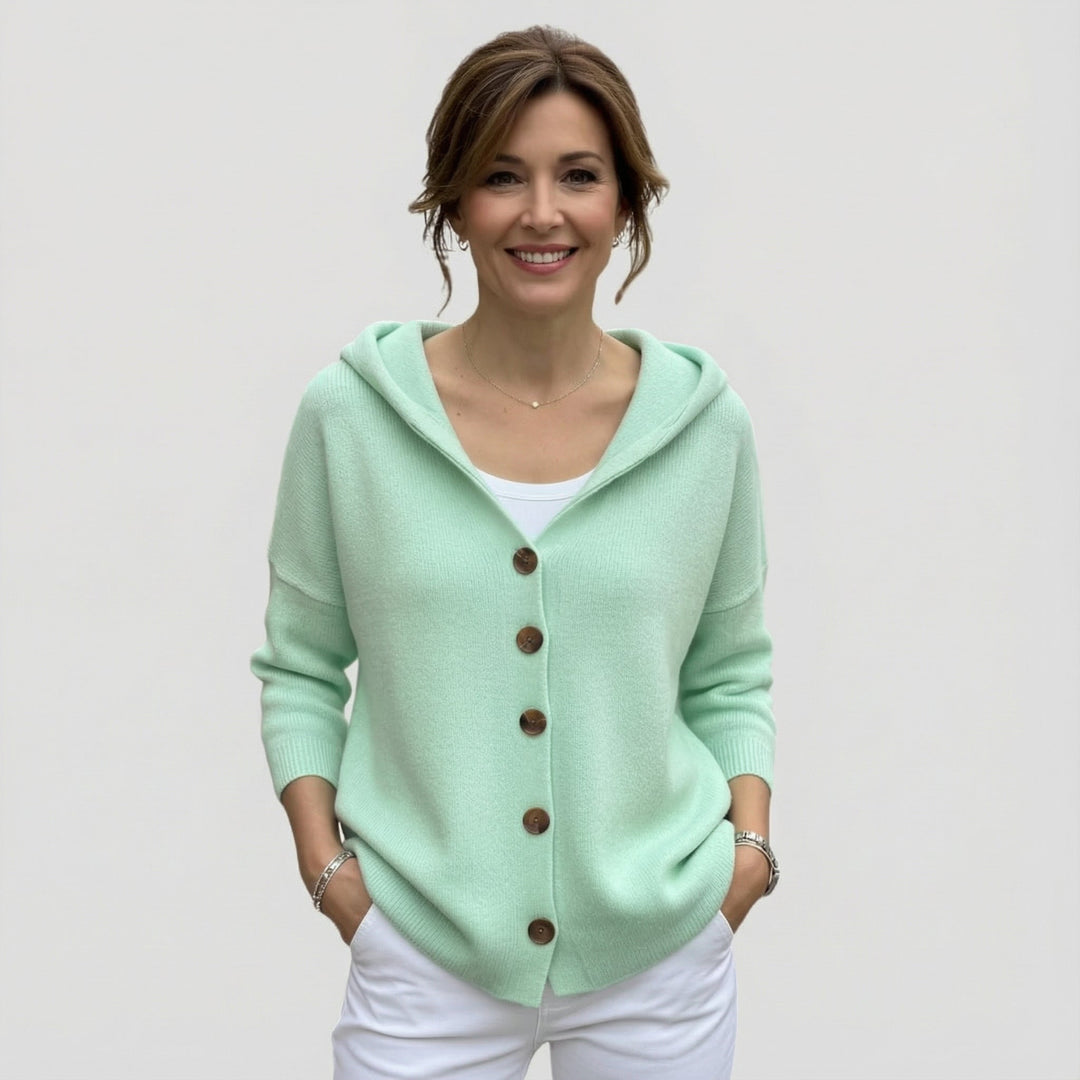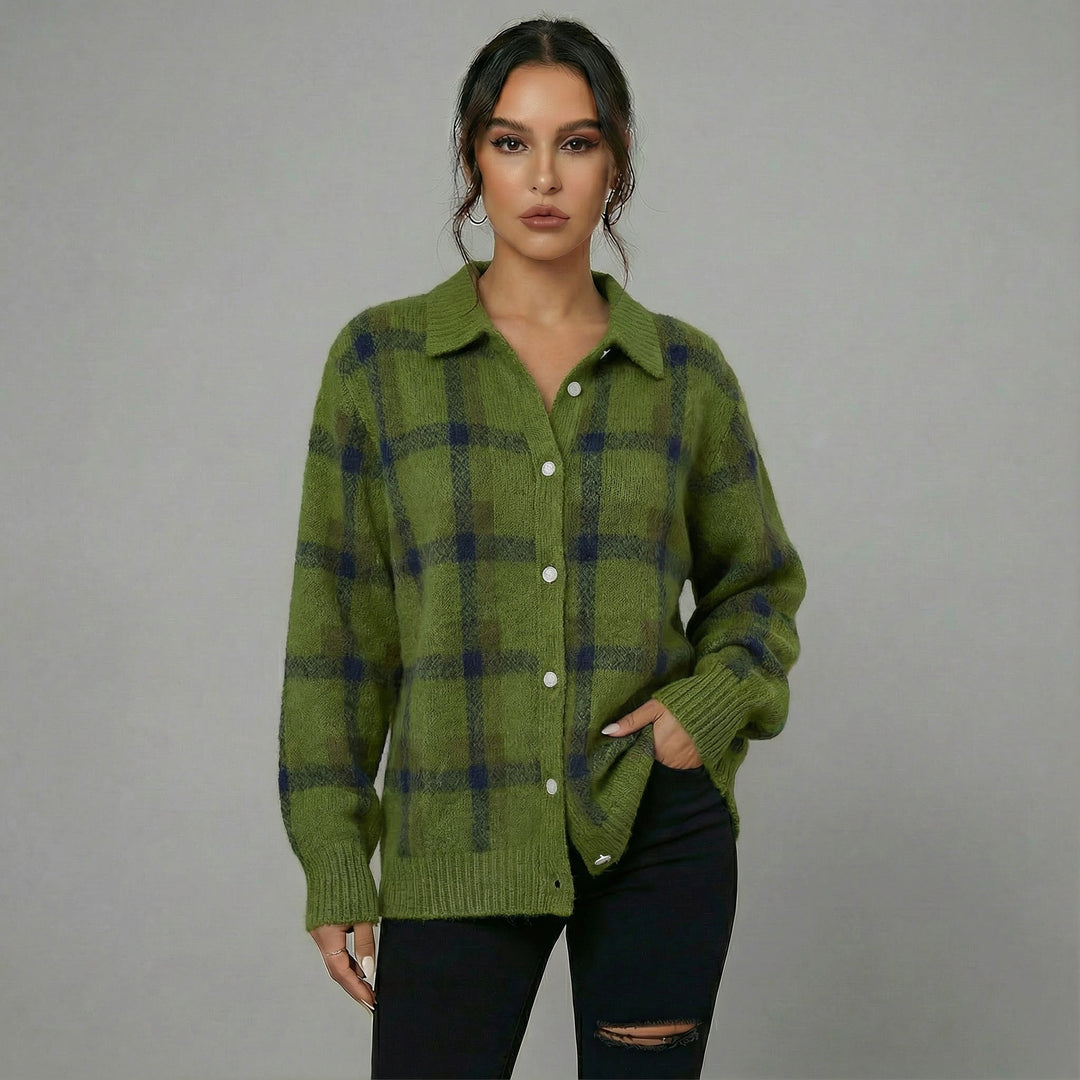 Océane - Pull-over à Col Montant Beige avec Motif Carré