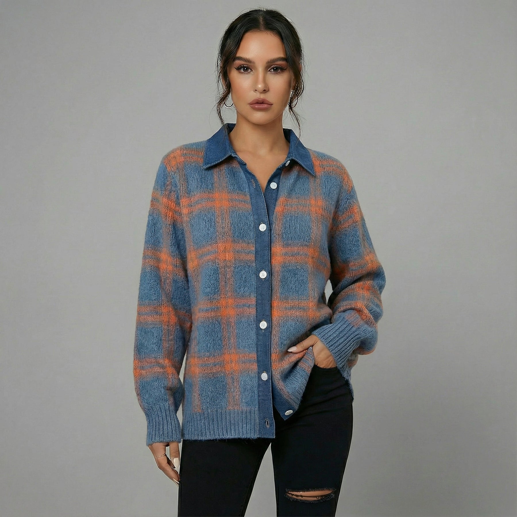 Apportez une touche de confort et de style à votre garde-robe avec ce cardigan à carreaux. Le mélange de bleu et d'orange crée un contraste vibrant et unique, tandis que la coupe décontractée et les boutons en contraste ajoutent une touche d'élégance. Ce cardigan est parfait pour les journées fraîches, offrant à la fois chaleur et style. Que vous le portiez seul ou superposé à un t-shirt, il deviendra rapidement un incontournable de vos looks de saison.